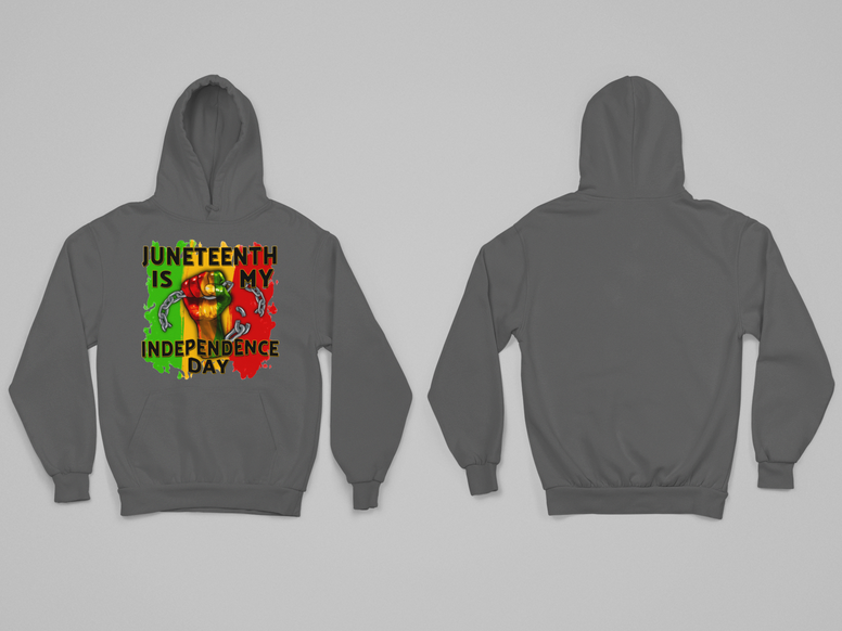 Stand bold and honor freedom with the Juneteenth Is My Independence Day Hoodie, featuring a powerful fist graphic that represents strength, resilience, and cultural pride. Crafted from a soft cotton-poly blend, this midweight hoodie offers warmth, durability, and a relaxed unisex fit perfect for layering, casual wear, or commemorative events. Available in sizes S through 5XL.
